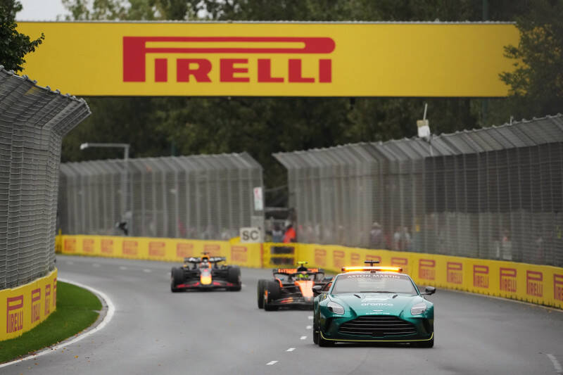 Noget af et antiklimaks for Williams-køreren, og skuffelsen kunne ses på mekanikerne hos både Alpine og Williams. Safety Car på banen for første gang og det tog så lang tid at få fjernet de to biler, og Carlos’ placering af sin ødelagte Williams, at bilerne måtte bruge pit lane. Esteban Ocon og Liam Lawson brugte Safety Car til at skifte til nye Intermediates.