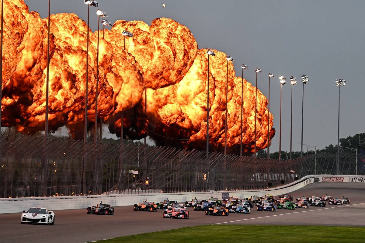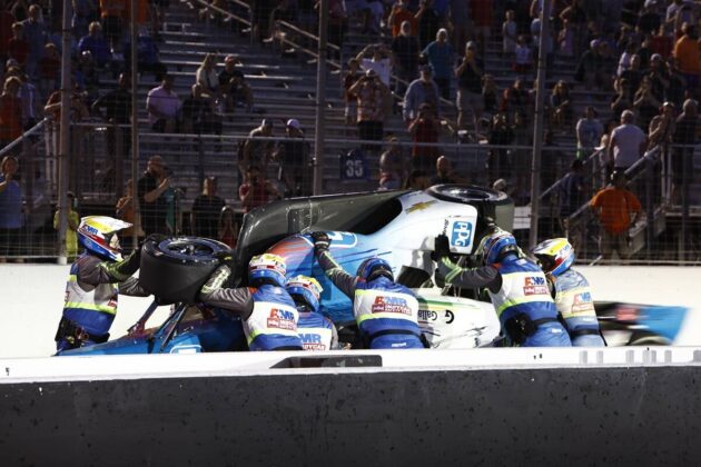 Halvvejs i løbet skete det grimme uheld. Louis Foster mistede kontrollen over sin RLL-racer og gled langs med muren. Det sendte bilen ind mod indersiden af banen. Josef Newgarden kom med høj fart og skulle overhale Alex Palou med en omgang. Han trækker indenom, men opgiver at komme forbi. Palou tager udsynet, og Josef kan pludselig se en bil komme imod ham fra siden. Han forsøger at køre helt ind til pitmuren, men der er ikke plads og med høj fart kører han ind i den ødelagte RLL-bil og bliver sendt op i luften.