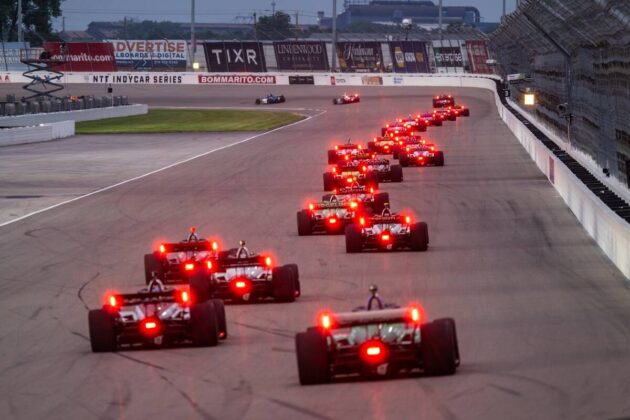 Her dummede David Malukas og Scott McLaughlin sig, da de trak direkte op i Fast Lane. De blev begge sendt nogle pladser bagud, og da løbet startede igen var det med Pato O’Ward forrest foran Conor Daly og Kyle Kirkwood.