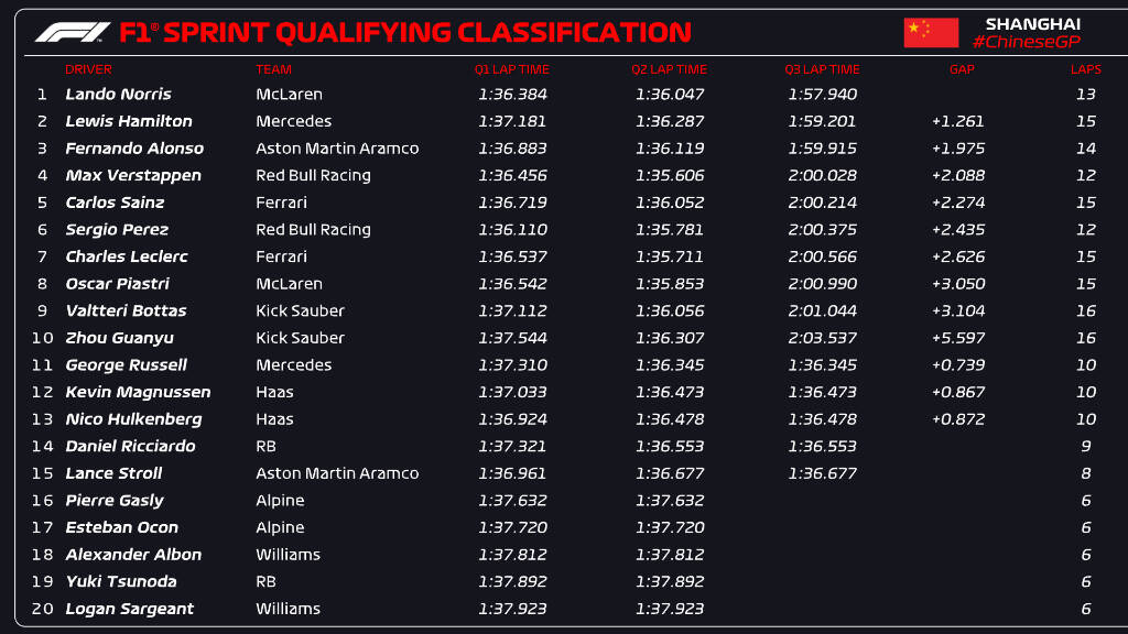 Først blev tiden sat, så blev den fjernet, og så blev den genindsat. Lando Norris sikrede sig pole position til lørdagens sprintløb foran Lewis Hamilton og Fernando Alonso. Regn skulle gøre forskellen.