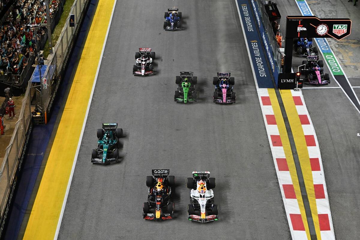 For mens George Russell tog starten, så fik Lando Norris en endnu bedre start fra sin plads fem. Han kom op til Max Verstappen og på siden af Oscar Piastri. Han havde en mindre kontakt med Maxs bagende og ødelagde en del af sin forvinge. Kontakten med Max skubbede bilen sidelæns og det ramte Oscar Piastri, der blev skubbet ud mod muren.