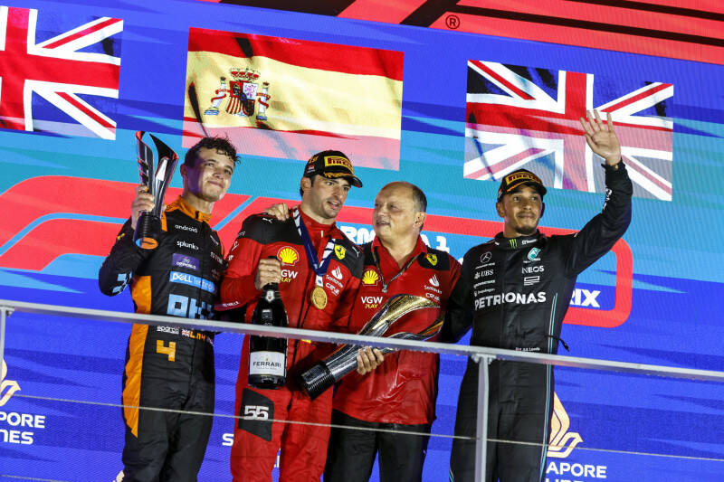 Naturligvis er han jublende lykkelig, men mon ikke størstedelen af Formel 1’s fans er lettede over, at der ikke står Red Bull Racing som sejrsherre på samtlige løb efter sæsonen. Carlos Sainz blev Driver of the Day, Lewis Hamilton køreren med hurtigste omgang.